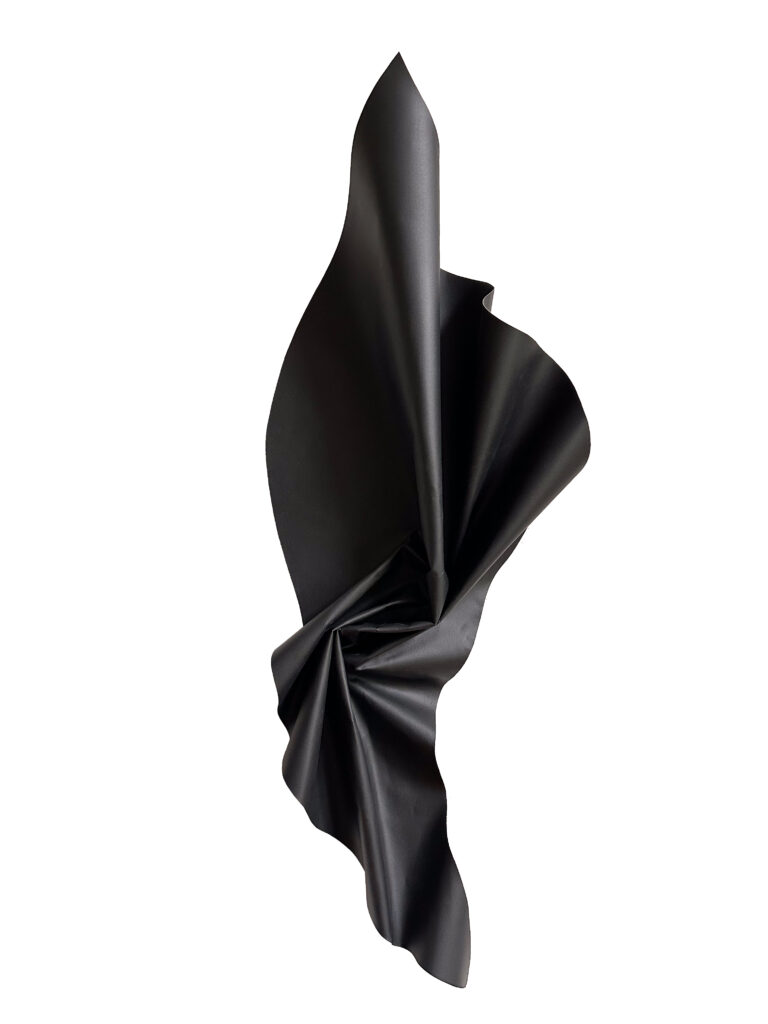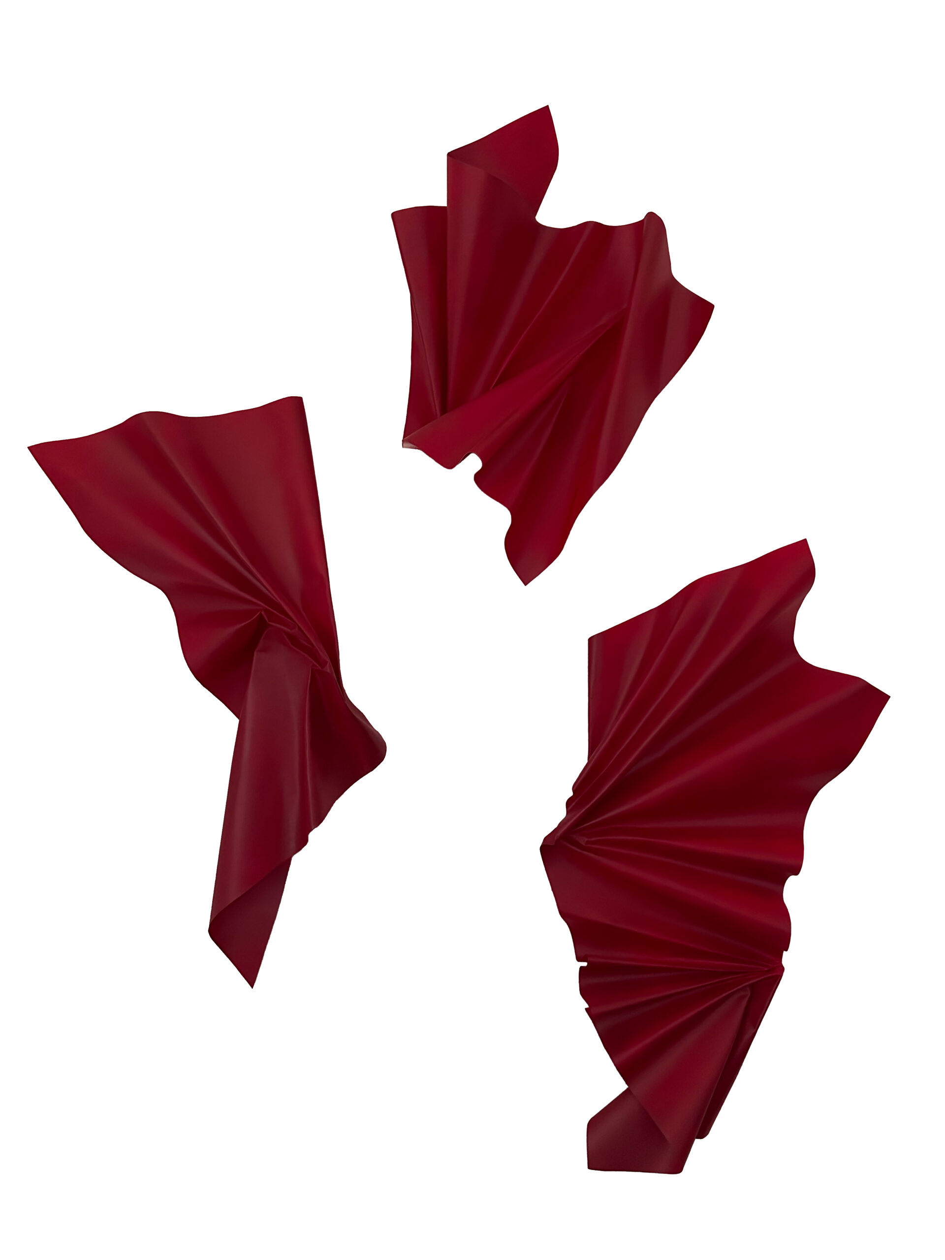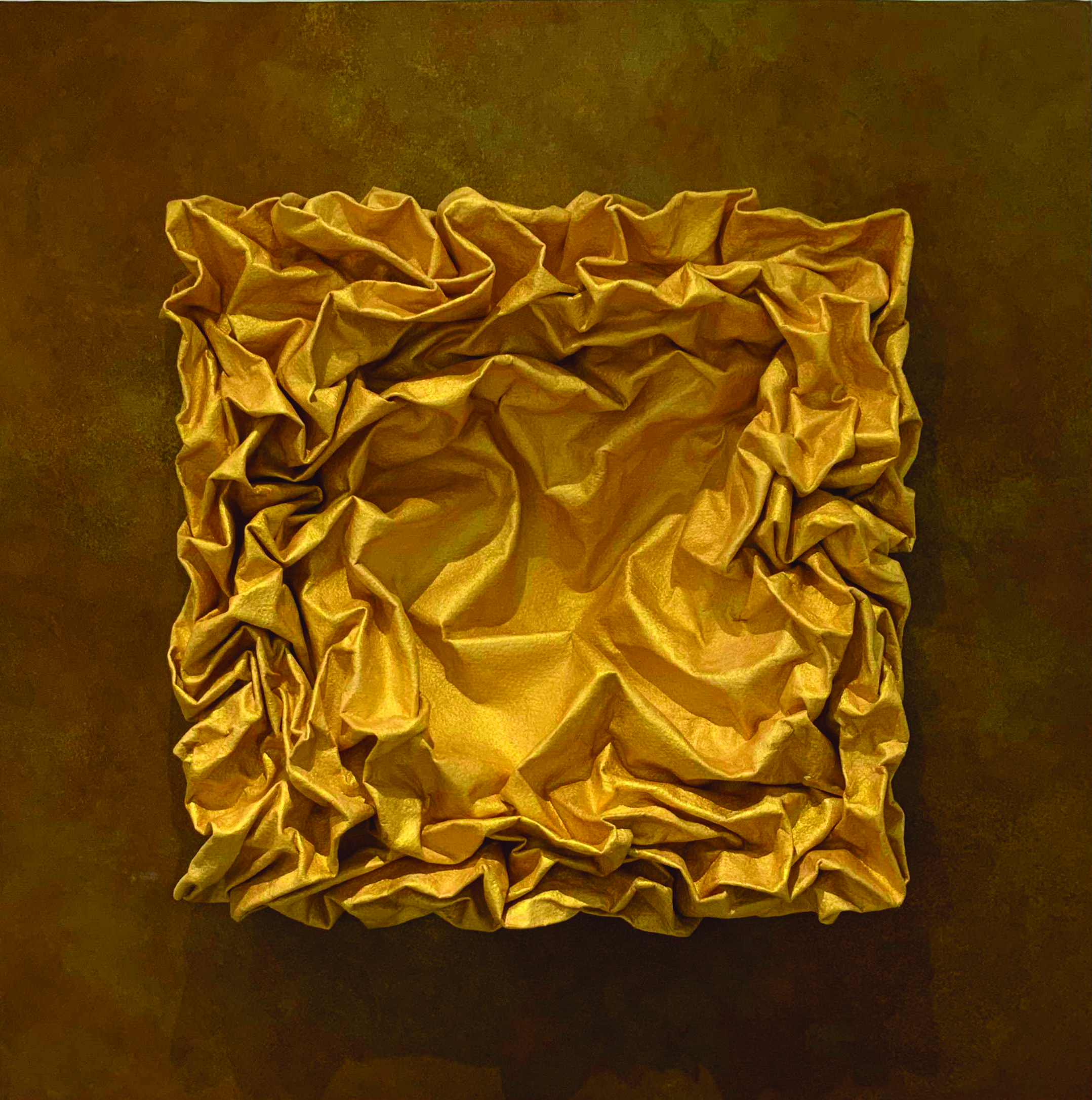 Diese Papierarbeiten leben vom Kontrast zwischen der strengen Gesamtform und den lebendigen Bewegungen der Falten im Inneren.