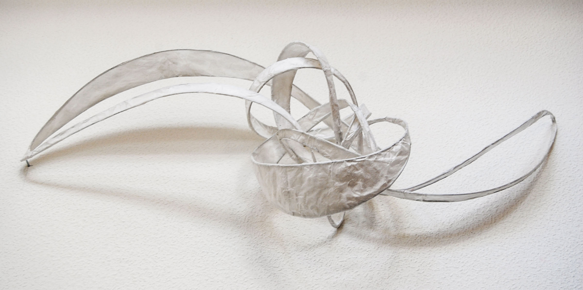 Aus Stahlstäben, zum Teil auch Stoff und Japanpapier entwerfe und forme ich sowohl Objekte,